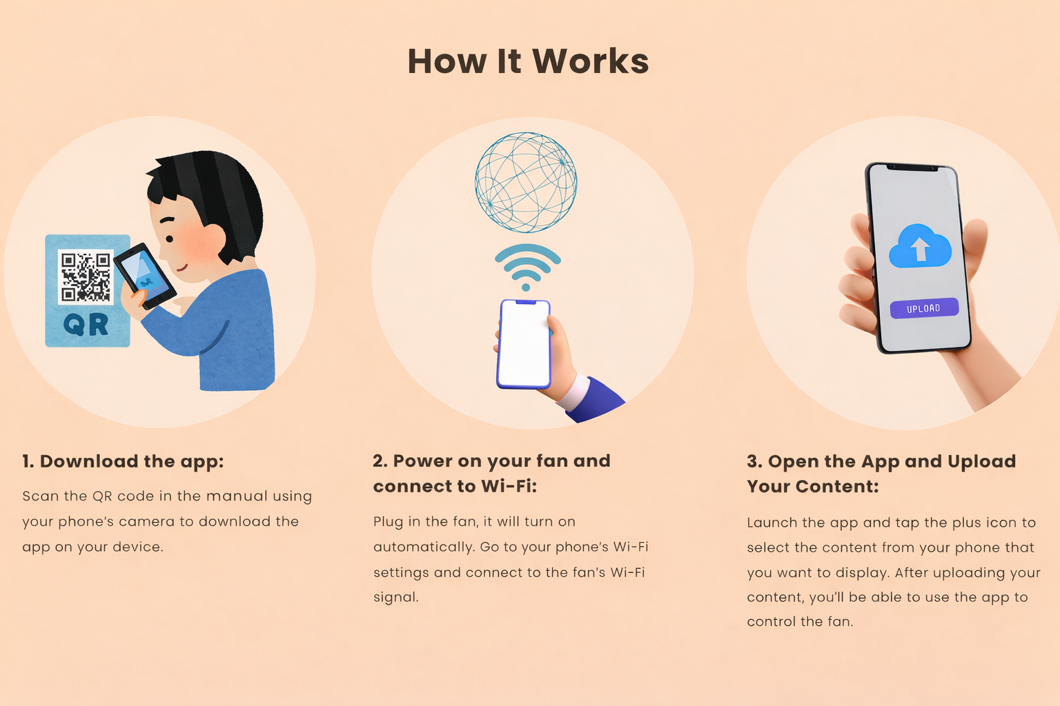 —-UPDATE 2/27—I figured out the “Old password” and I managed to change it. It’s 123456789. No complaints, The product works fine now. App is a bit buggy but that can be forgiven.—-2/26— (Original)The fan is working! You can add your own pictures and videos. However, I'm having trouble changing its wifi password. It says "Old password doesn't match" but it doesn't have a password when first plugged in.